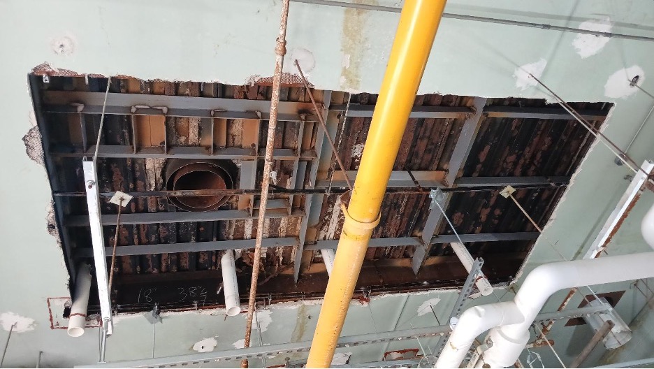 For those of you who are not inclined to just take my word (I am a skeptic myself, I don’t mind), here is a picture of the substructure under one of these roof sections at the high school. Note the damage to the wood. This was discovered incidentally when doing other work and requires immediate repair, which the district will do using our capital reserve because this one can’t wait for 2026 or later.
