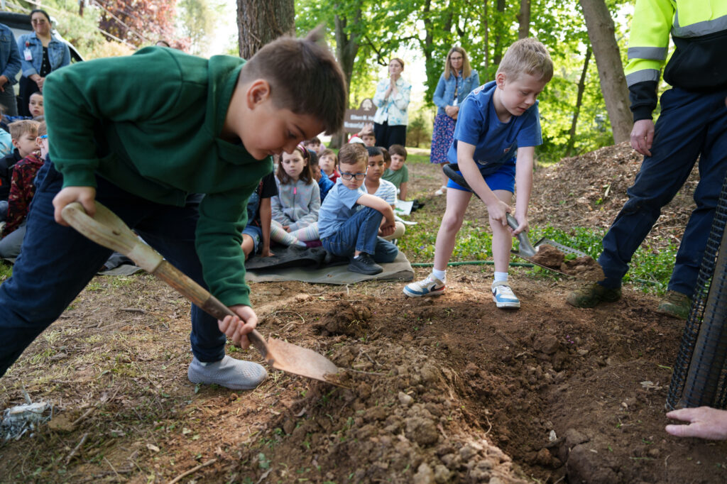 For many of the students, the morning was as much about participation as it was about learning. Several took turns digging and filling the hole, while others gathered nearby, asking questions and watching closely.