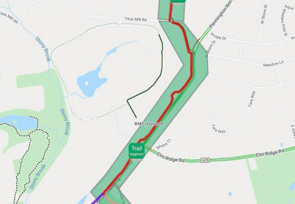 The section runs through property formerly owned by Bristol Myers Squibb and is part of the Lawrence Hopewell Trail network connecting communities across Mercer County. Tens of thousands of residents use the trail annually.
