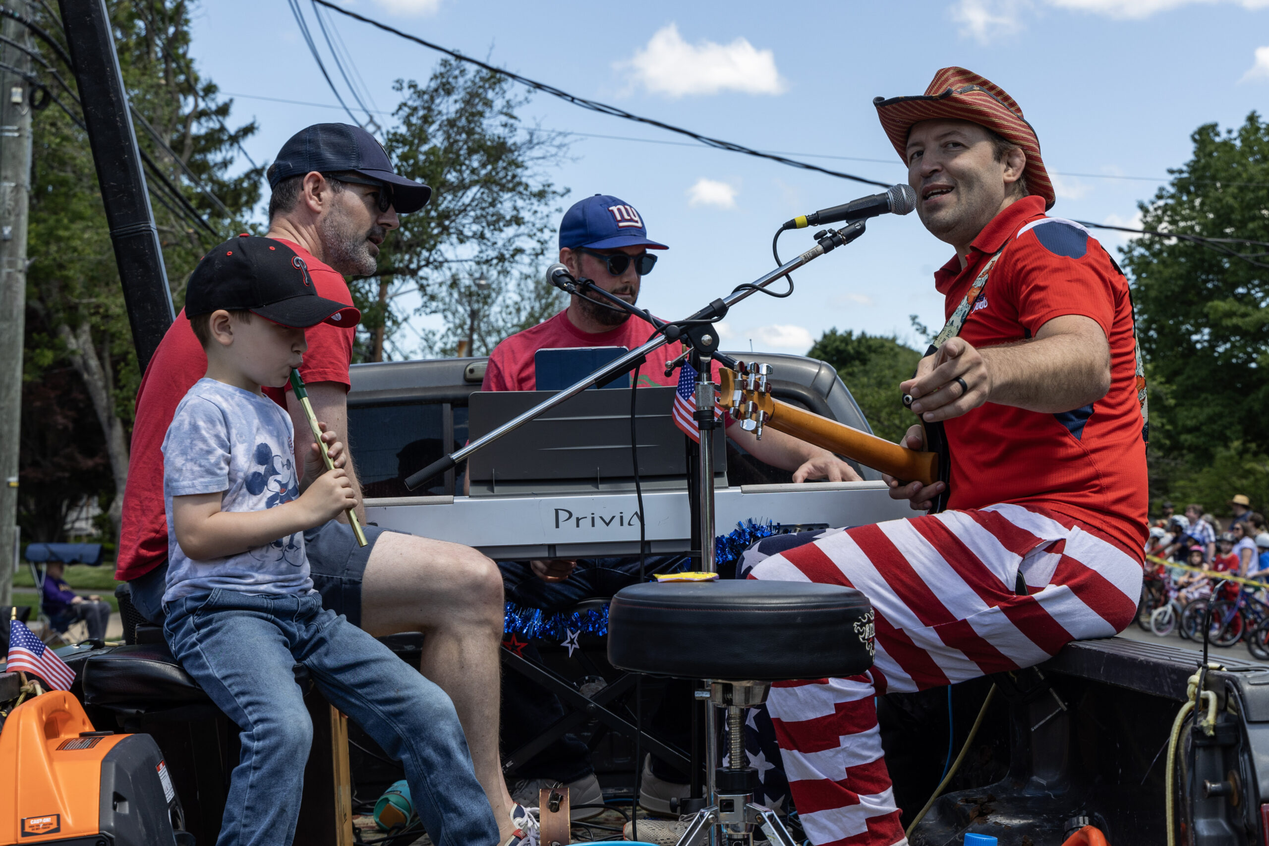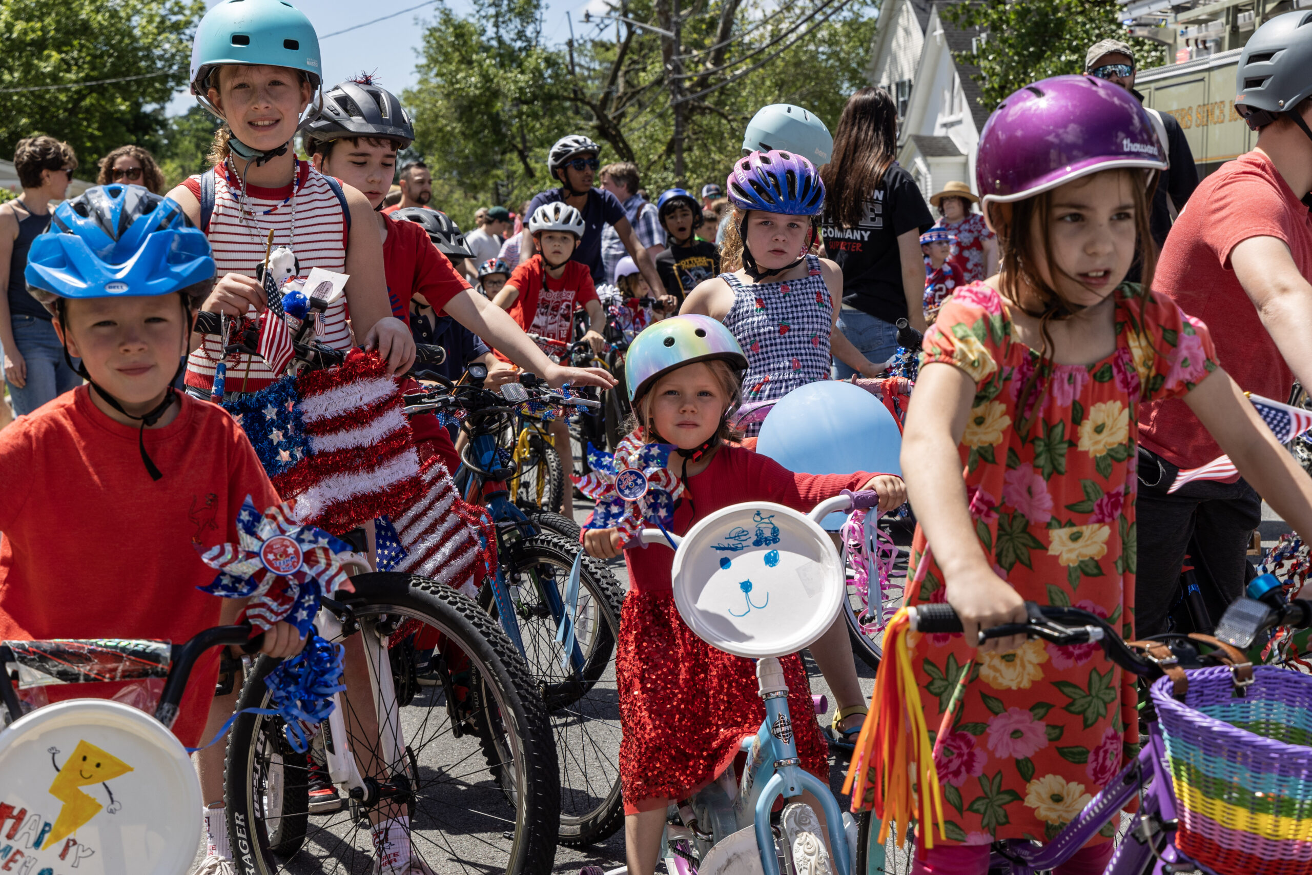 The day kicked off with the always-popular Kids Bike Brigade, featuring dozens of children on festively decorated bicycles, trikes, and scooters. Many wore red, white, and blue attire, waving flags or donning patriotic hats as they rolled out.