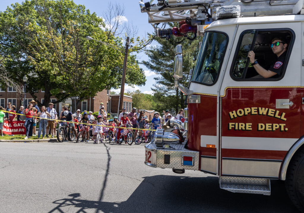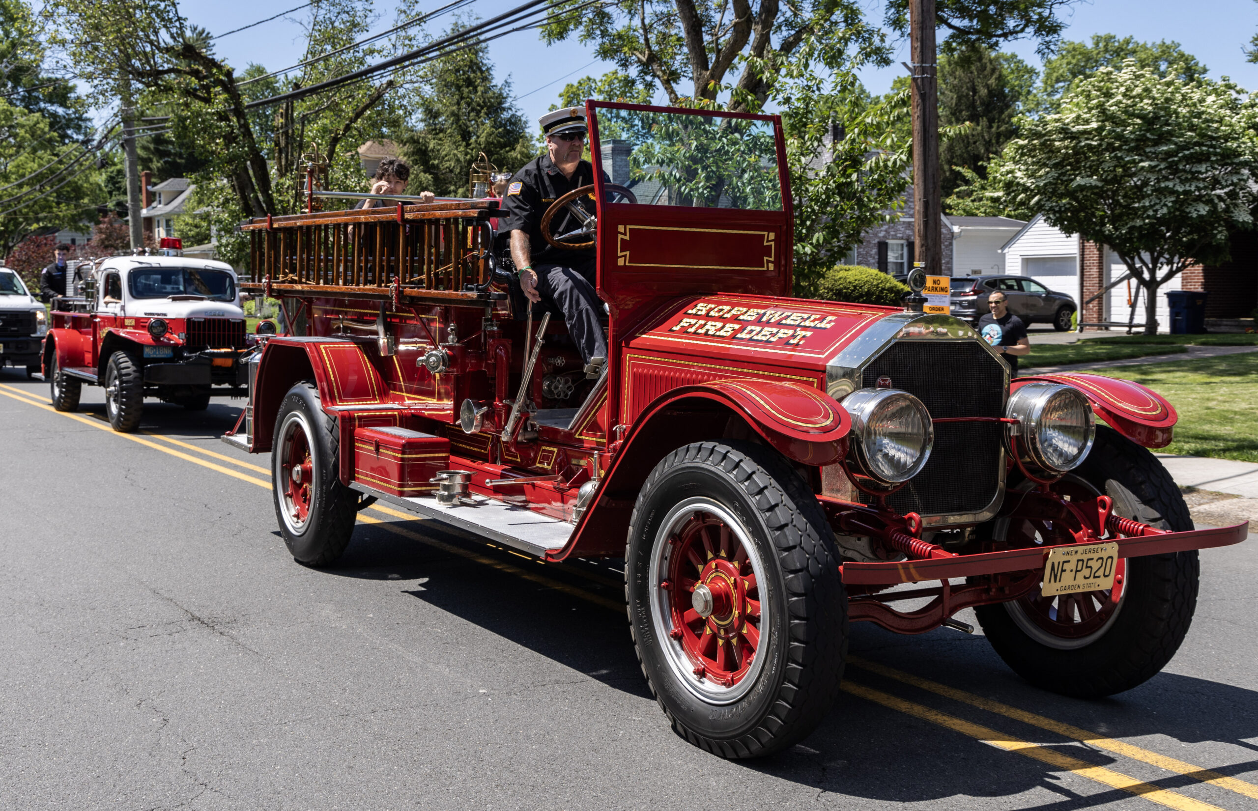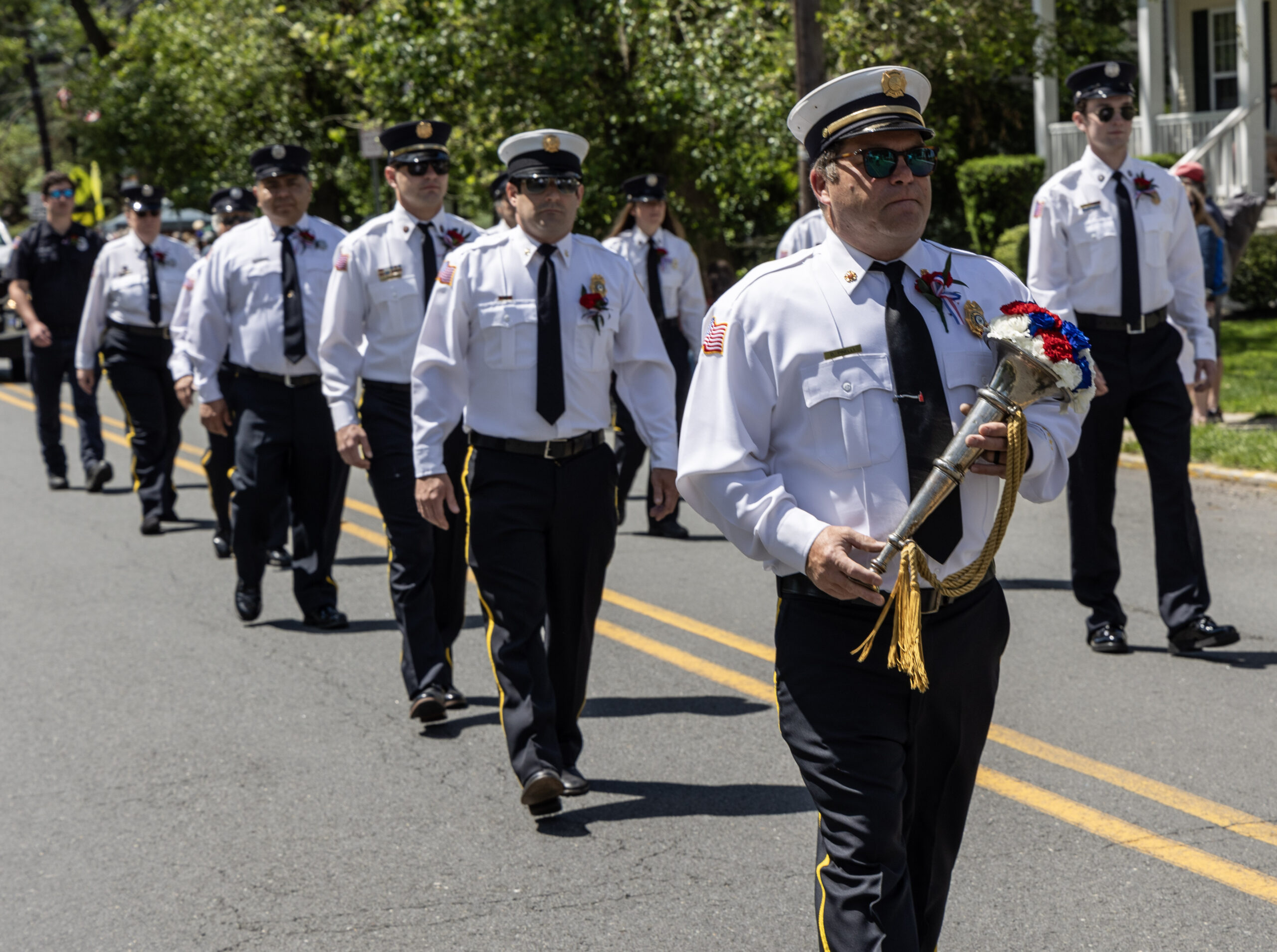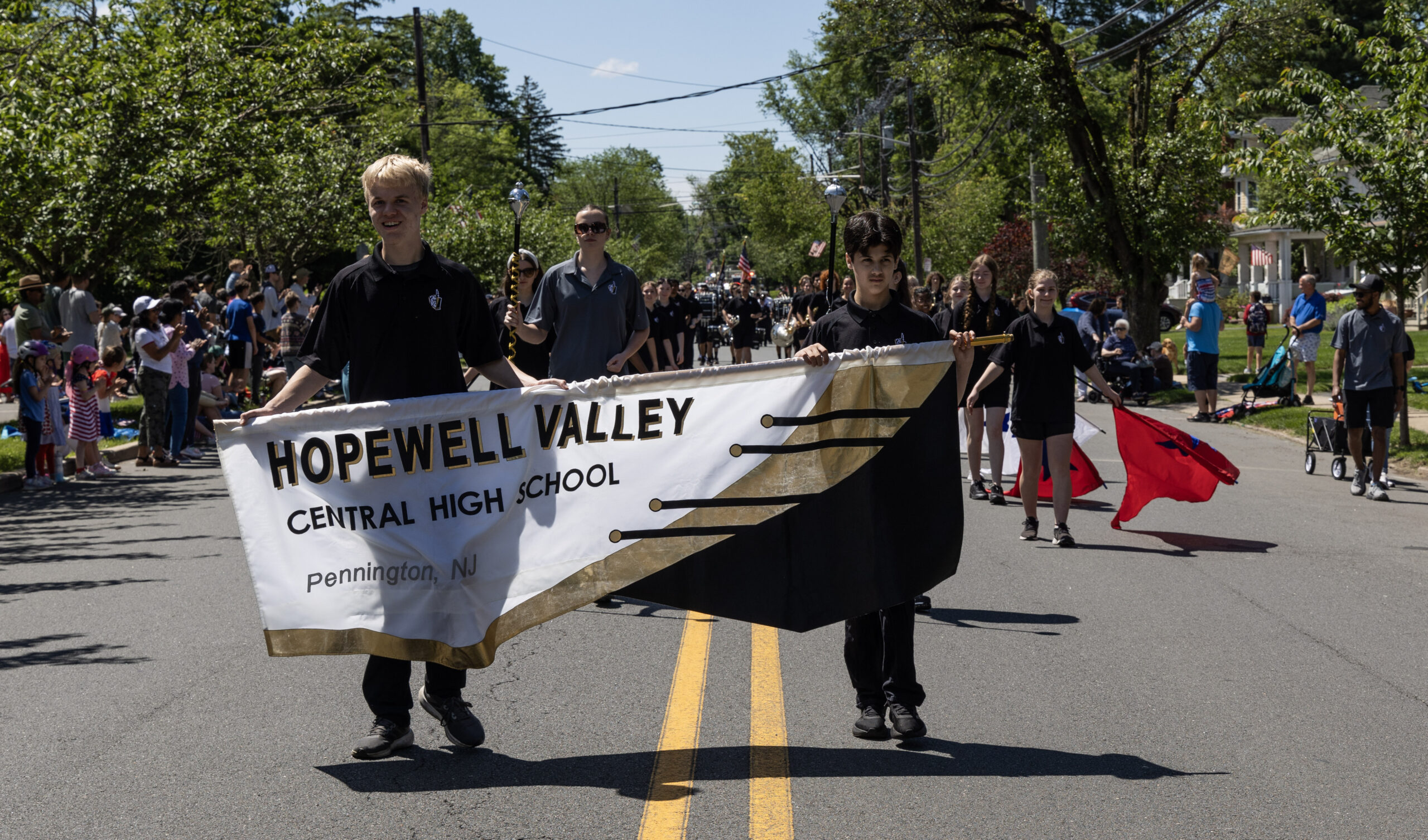 The parade lineup included fire trucks from Pennington, Hopewell, and Union — ranging from antique engines to modern rescue rigs. Members of the Hopewell Valley Central High School Marching Band and Color Guard brought energy and sound to the event, performing as they moved in step down the parade route.