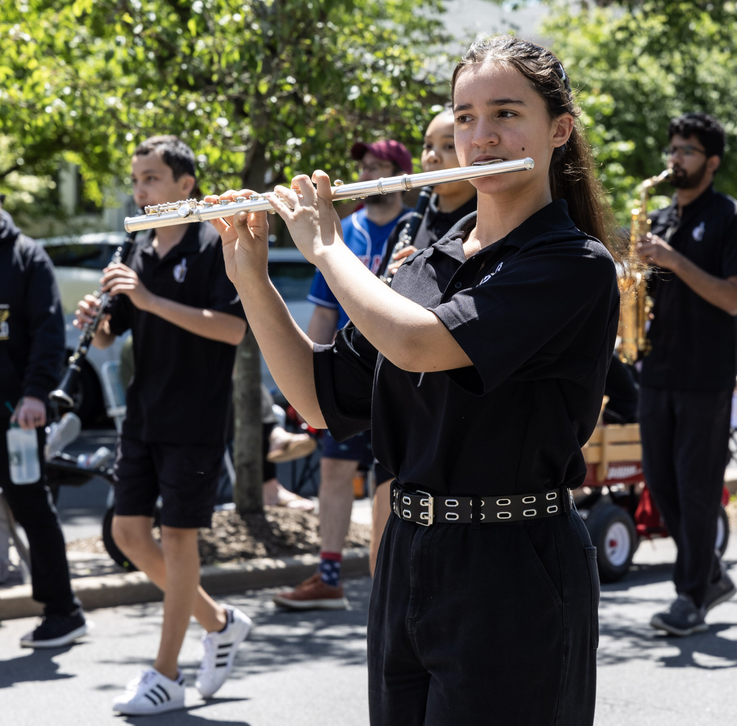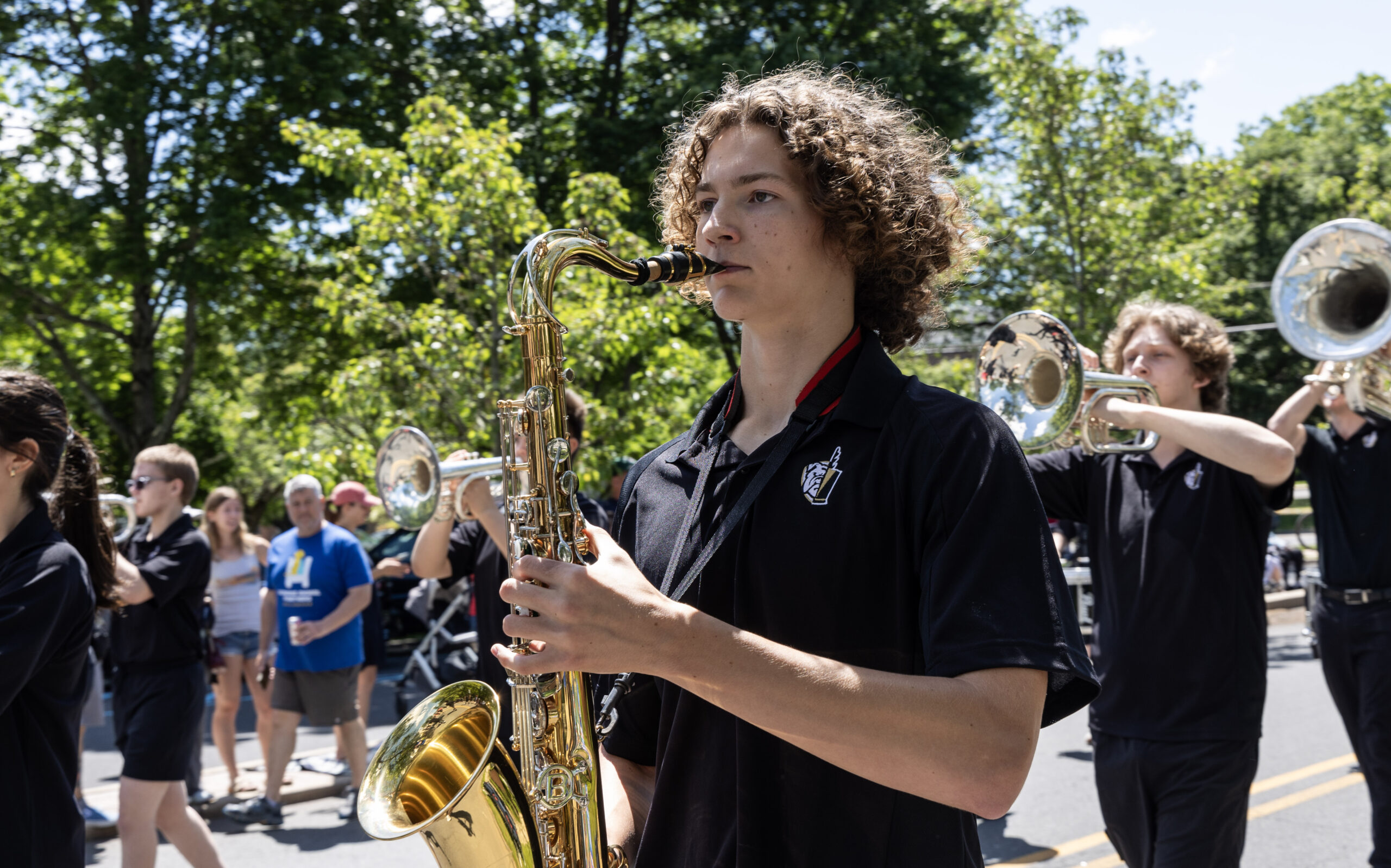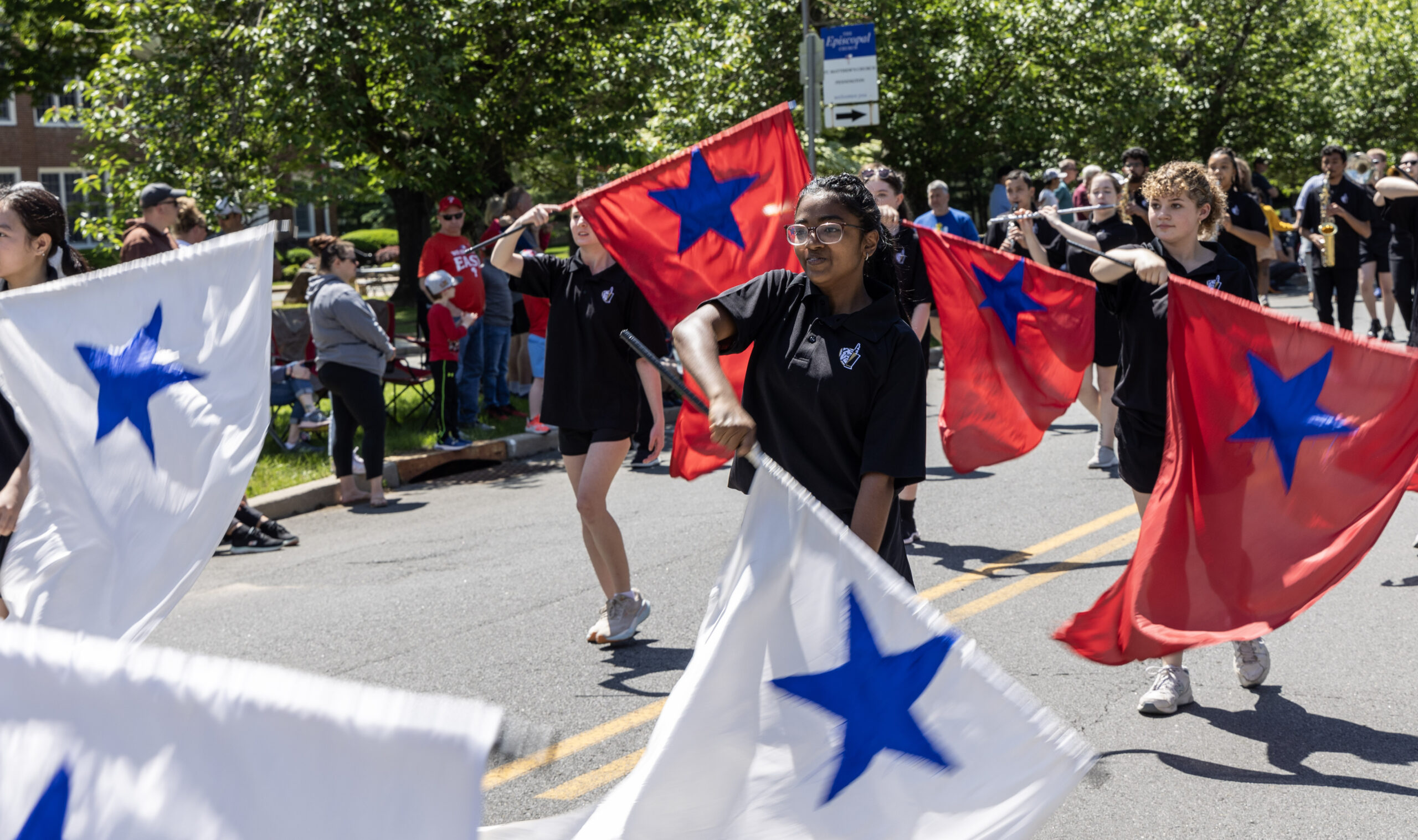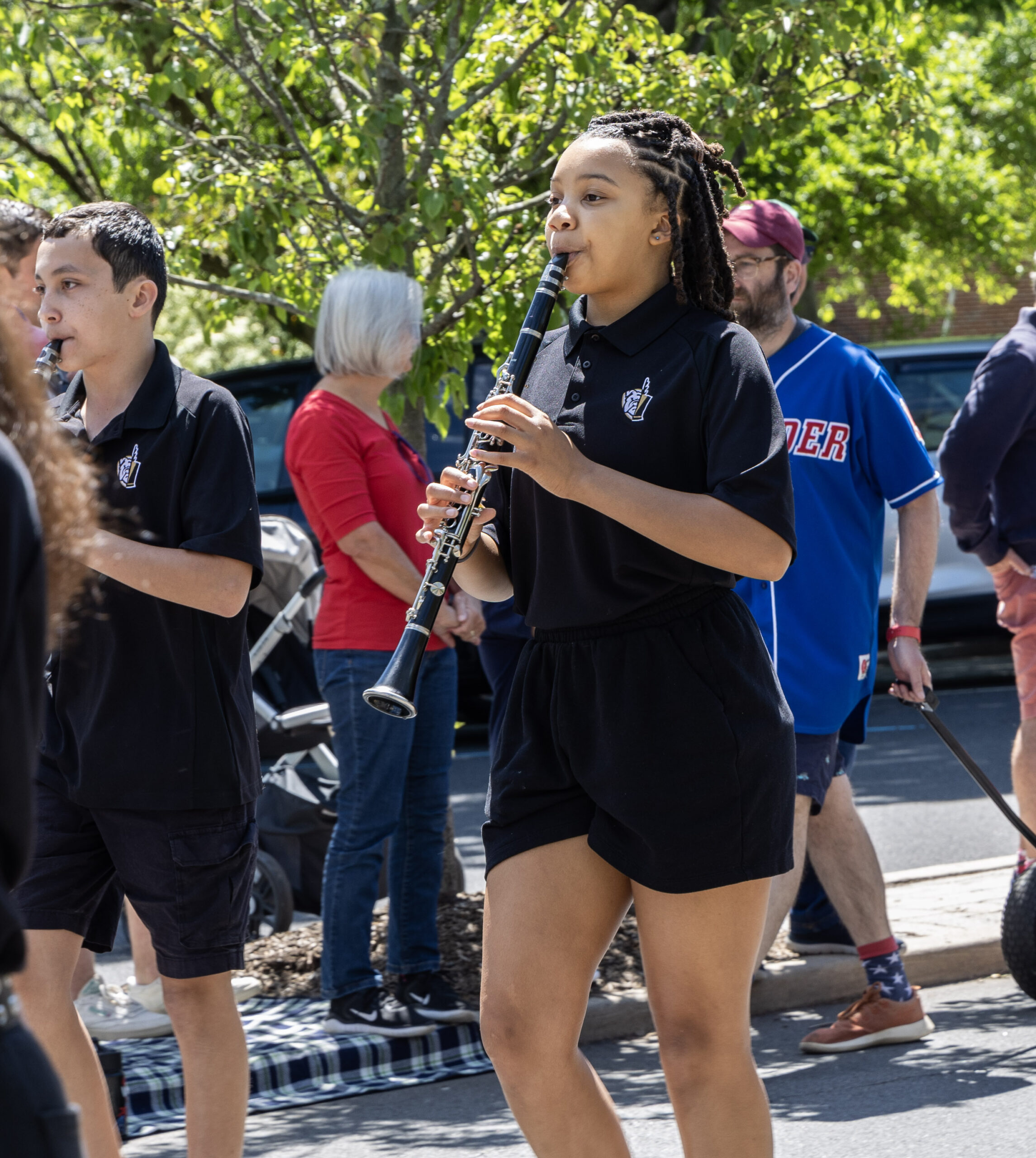 The parade lineup included fire trucks from Pennington, Hopewell, and Union — ranging from antique engines to modern rescue rigs. Members of the Hopewell Valley Central High School Marching Band and Color Guard brought energy and sound to the event, performing as they moved in step down the parade route.