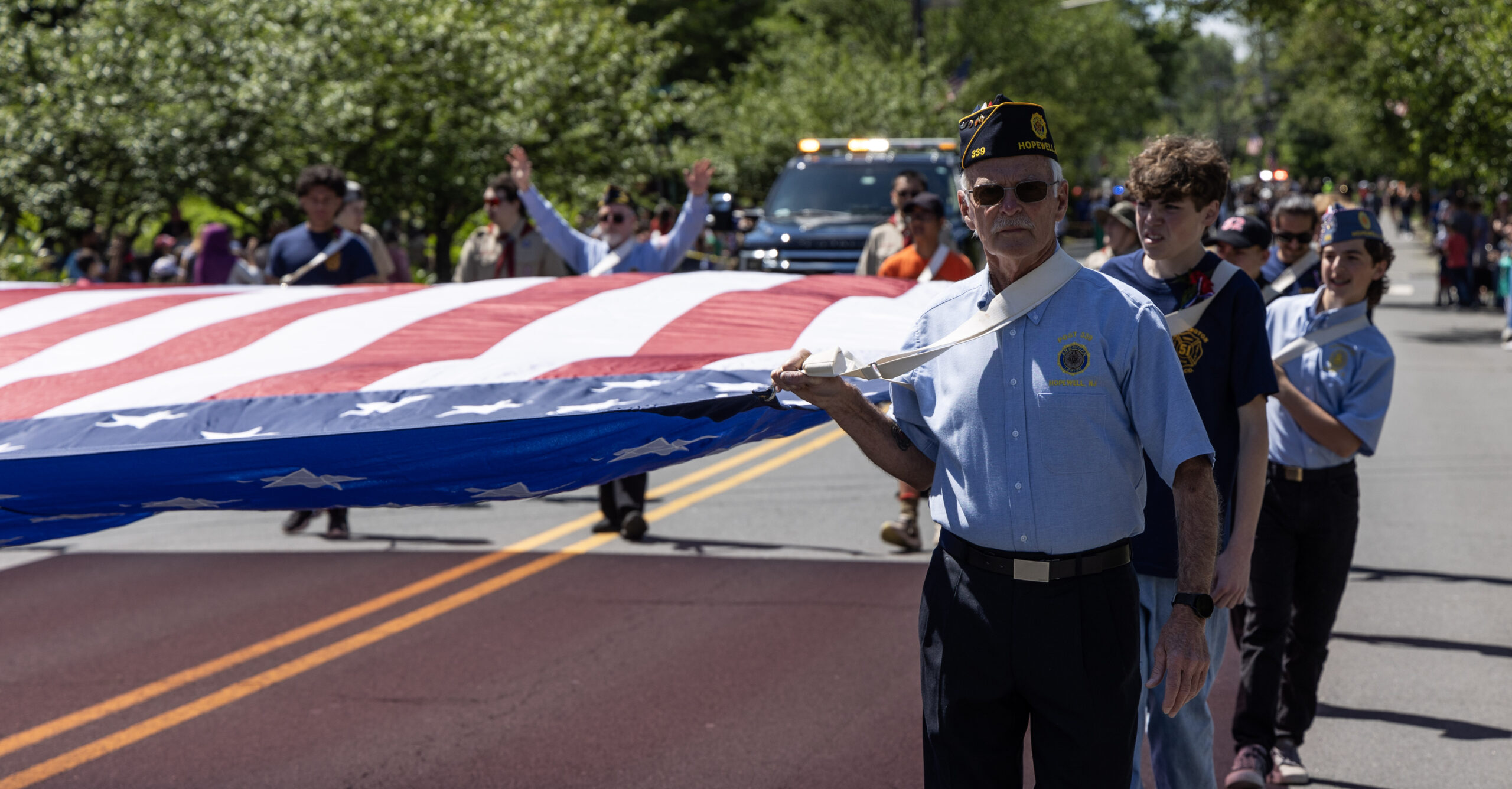 Veterans and public safety officers helped carry a giant American flag through the streets, drawing applause and cheers from everyone.
