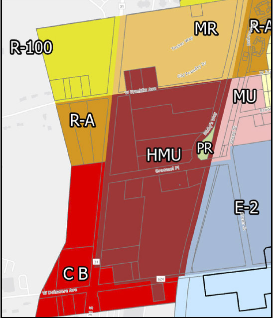 - Highway Mixed Use (HMU) along Route 31, allowing upper-floor housing and mixed-use redevelopment on appropriate parcels off the highway frontage.