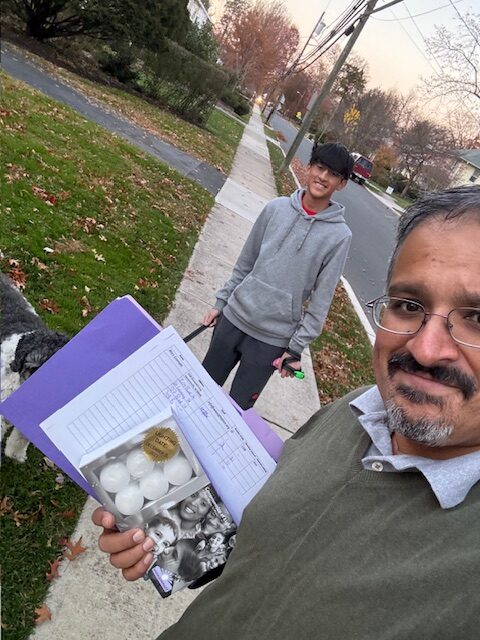 John’s grassroots approach includes organizing logistics for luminary kit pickups, developing outreach materials, and training block leaders across neighborhoods. He also works closely with his wife, Shobita, and their two sons, Rowan and Jaihan (JJ), who he says keep him grounded in the family-centered values that guide both his volunteer and professional life.