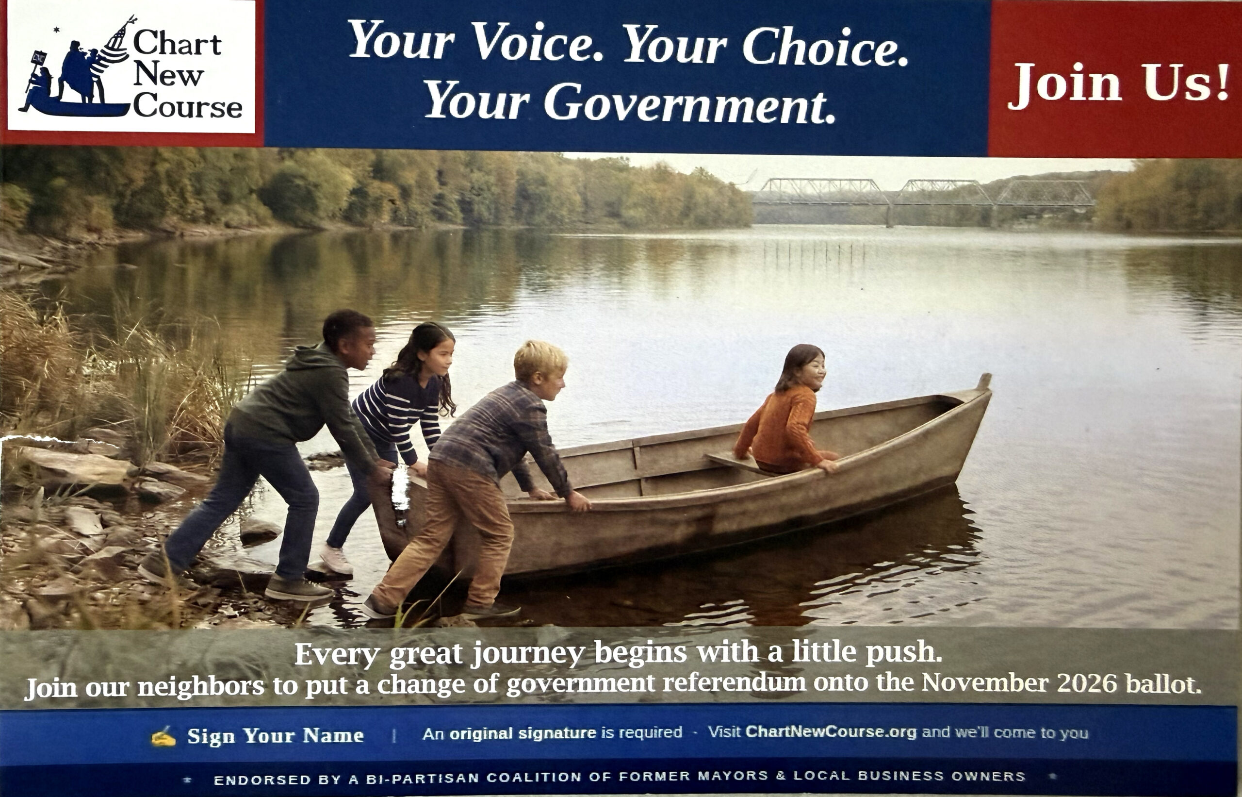 In the coming weeks, our “Committee of Petitioners” will be out with clipboards. They need signatures to put this proposed change to a vote on the November 2026 ballot. Between now and then, we’ll continue the community discussion and public engagement in person, in print, and online, so that voters will be well-informed of the proposed change before they vote.