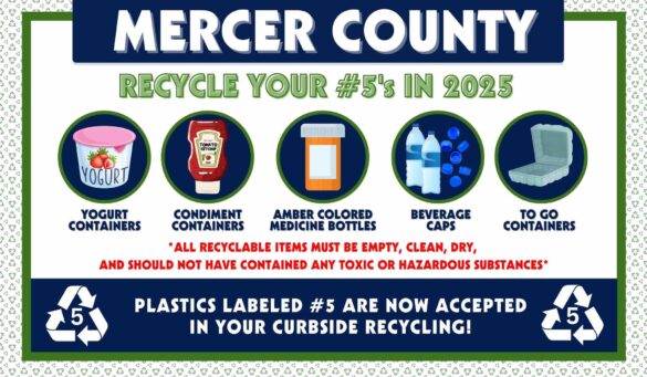 The Mercer County Improvement Authority will now accept #5 plastics (polypropylene) in residents’ curbside recycling containers, along with plastics labeled #1 and #2.