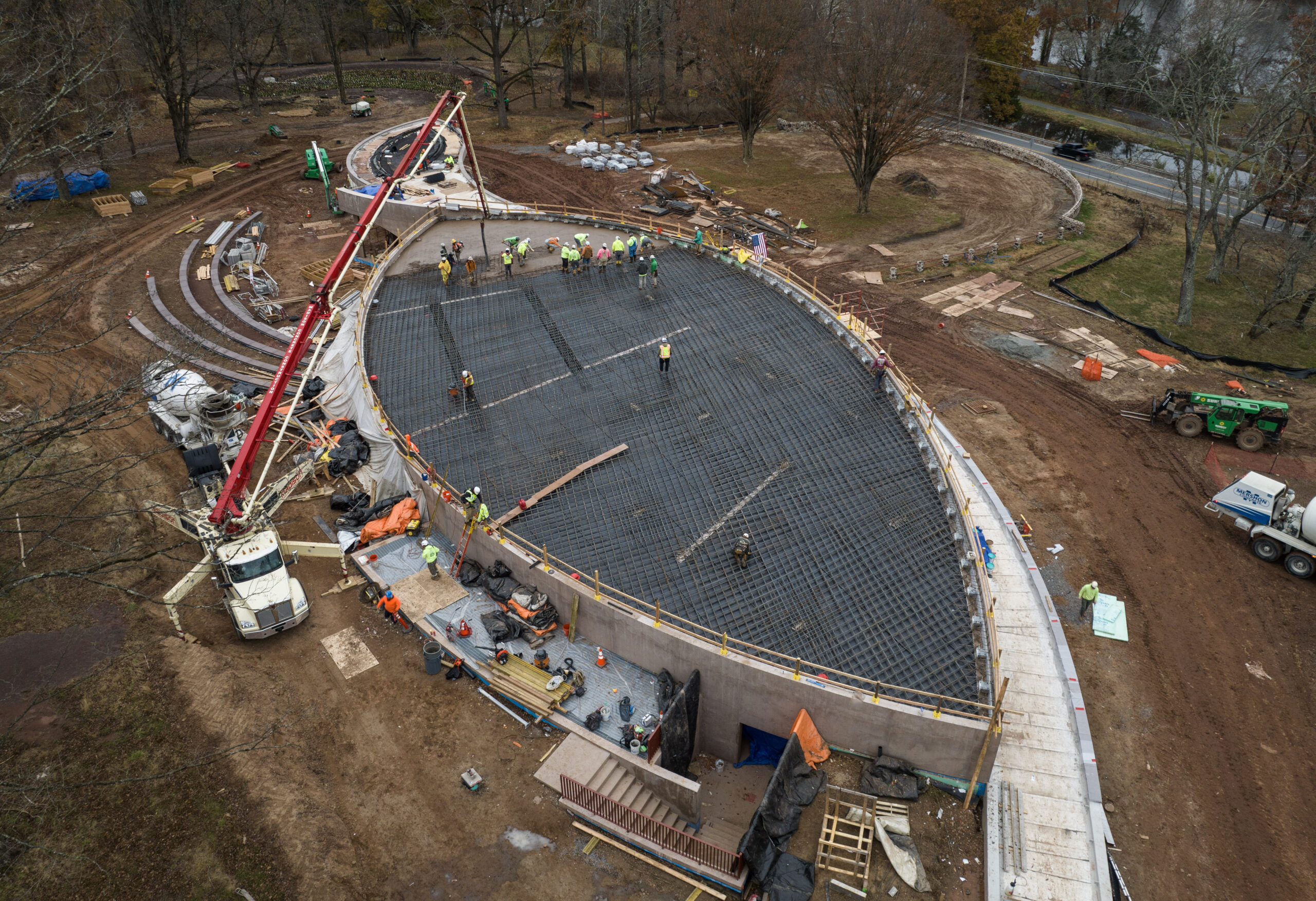 “Today’s concrete placement for the main roof deck marks a major milestone for the new Washington Crossing State Park Visitor Center — it’s the last of the major concrete components and the single most challenging activity on the project,” Kamaratos said. “Between all of us involved in the effort, we have more than a thousand combined years of field experience, and we have never come across something as unique and representative of the American spirit of craftsmanship, resilience, and pride in building something lasting for future generations.”
