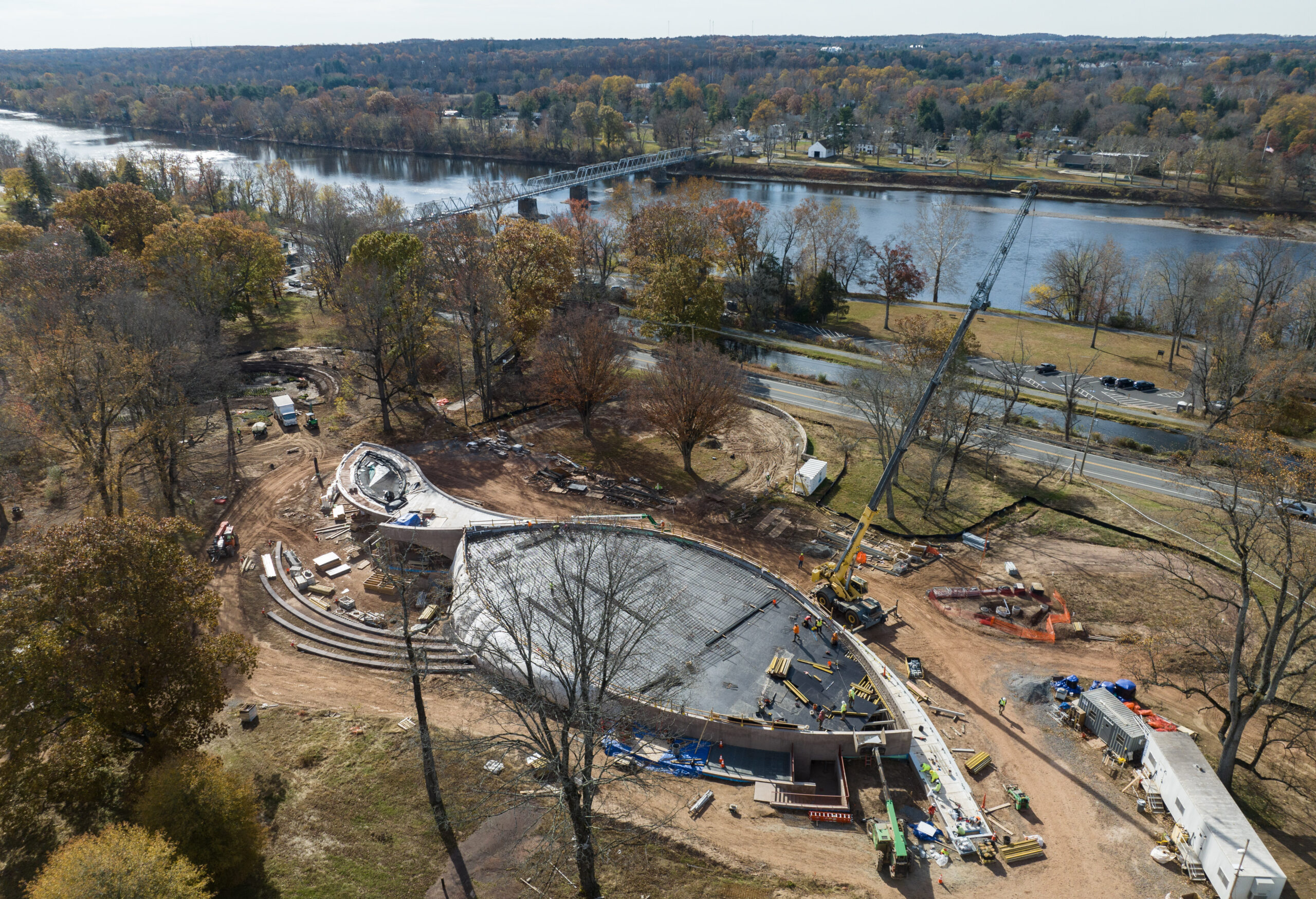Construction of the new Washington Crossing State Park Visitor Center reached a major milestone this week with the installation of the museum’s main roof deck — a complex, 8,500-square-foot concrete structure that builders say captures the distinctive architectural character of the project and signals the start of its final phase.