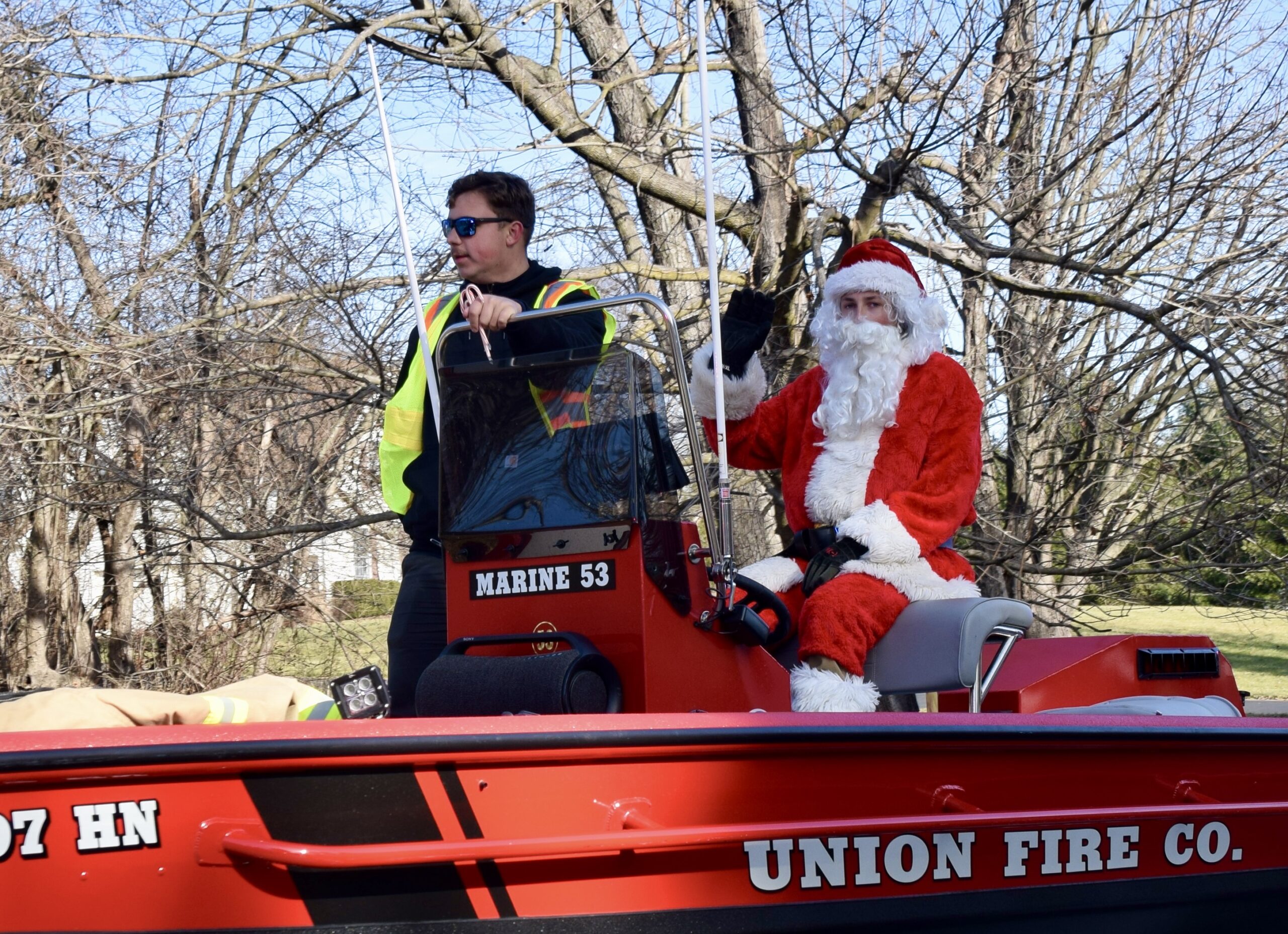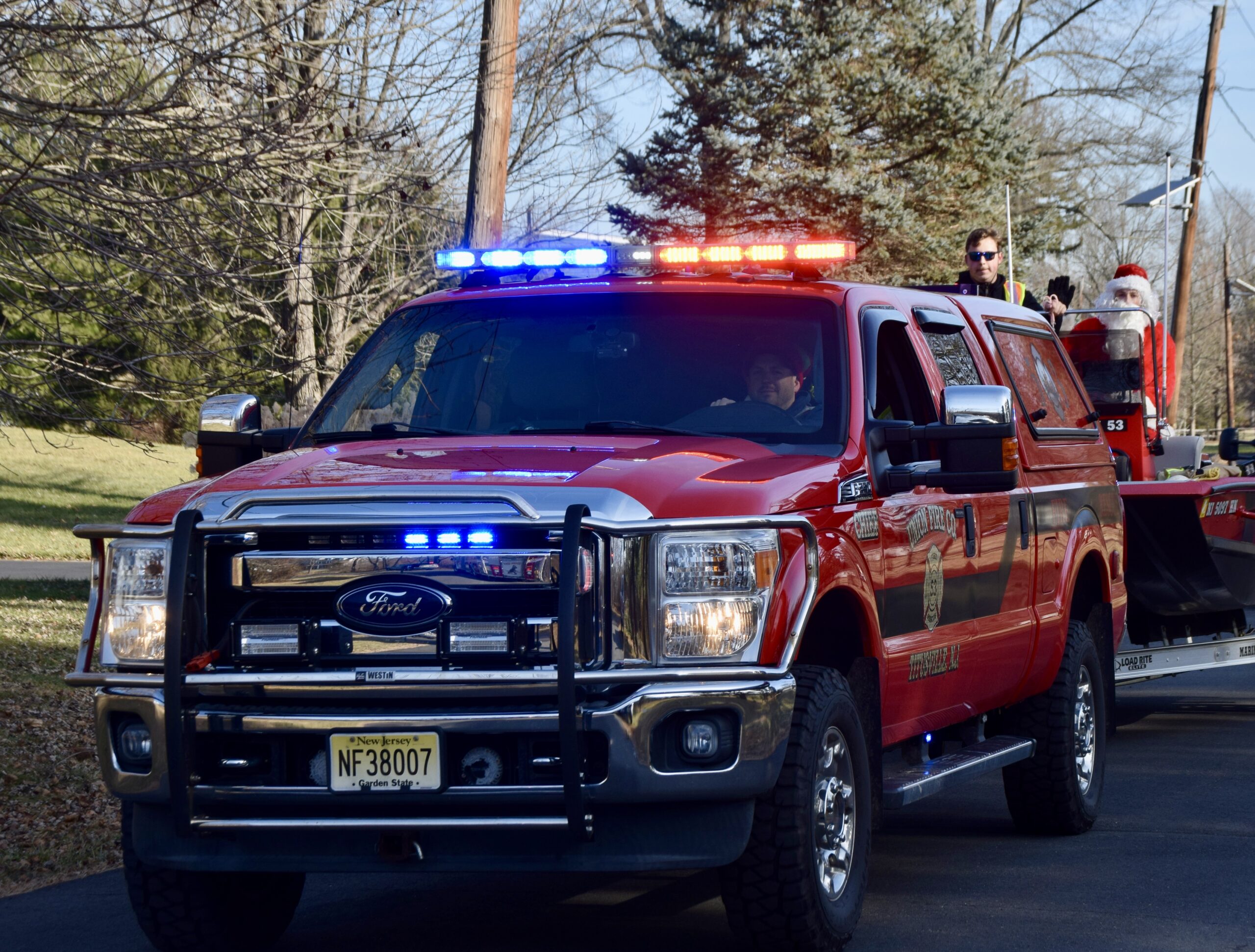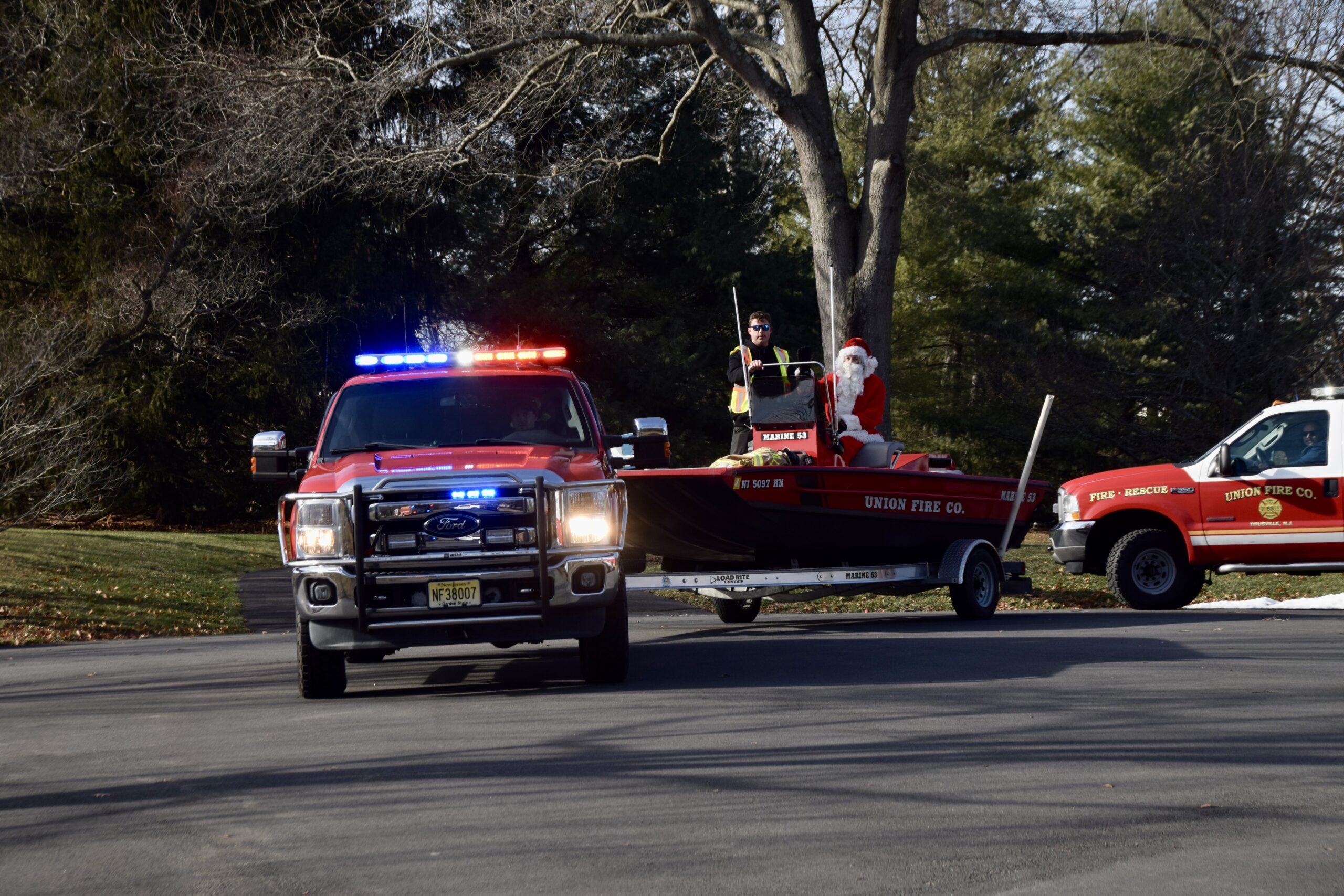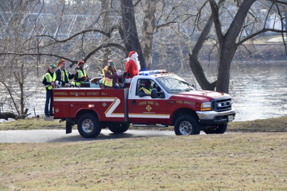 On Saturday, Union Fire Company and Rescue Squad brought Santa through neighborhoods in Hopewell Township, where he waved to families from the back of a fire truck and even hitched a ride in a rescue boat. Residents lined streets and driveways as sirens, lights, and holiday music announced his arrival.