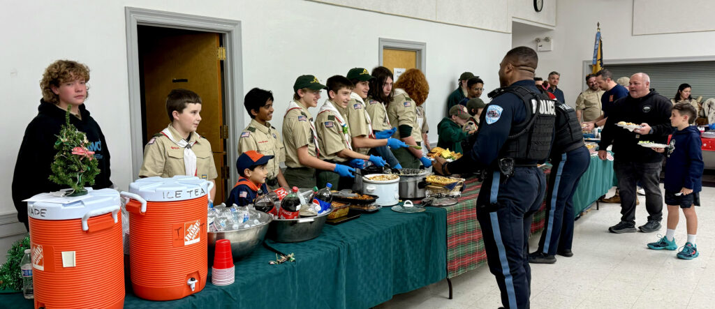Roughly 45 Scouts, and their parents, helped prepare and serve the meal inside the Union Fire Company community room. The event drew a crowd from the Hopewell Township Police Department, Union Fire Company, local park police, and other first responders.
