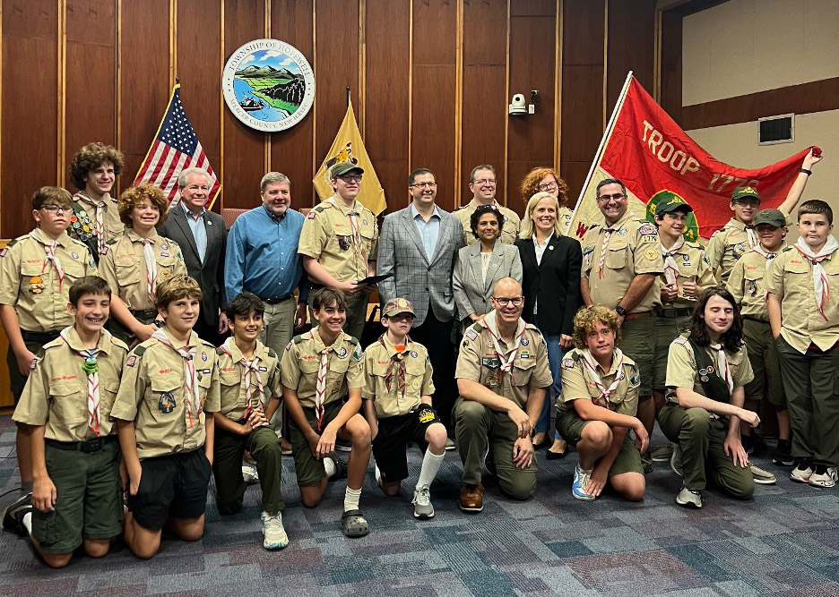 Hopewell Township Committee members honored Boy Scout Troop 1776 Monday night for their service and community leadership, recognizing the troop’s 90th anniversary and the recent restoration of the historic Washington Crossing sign at Ingleside and Pennington Road.