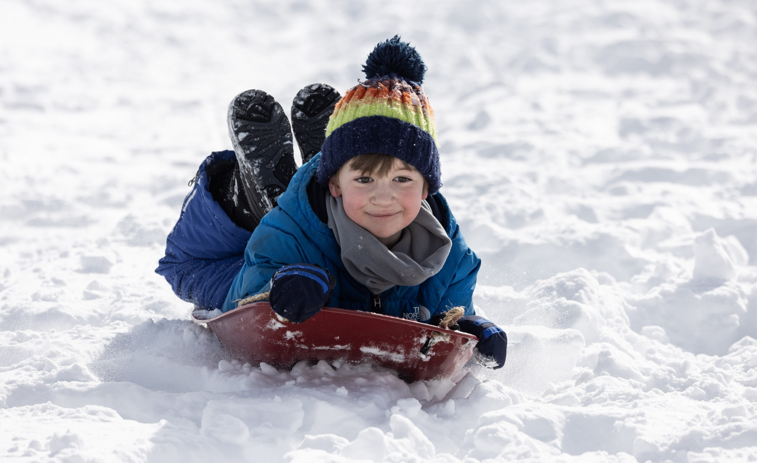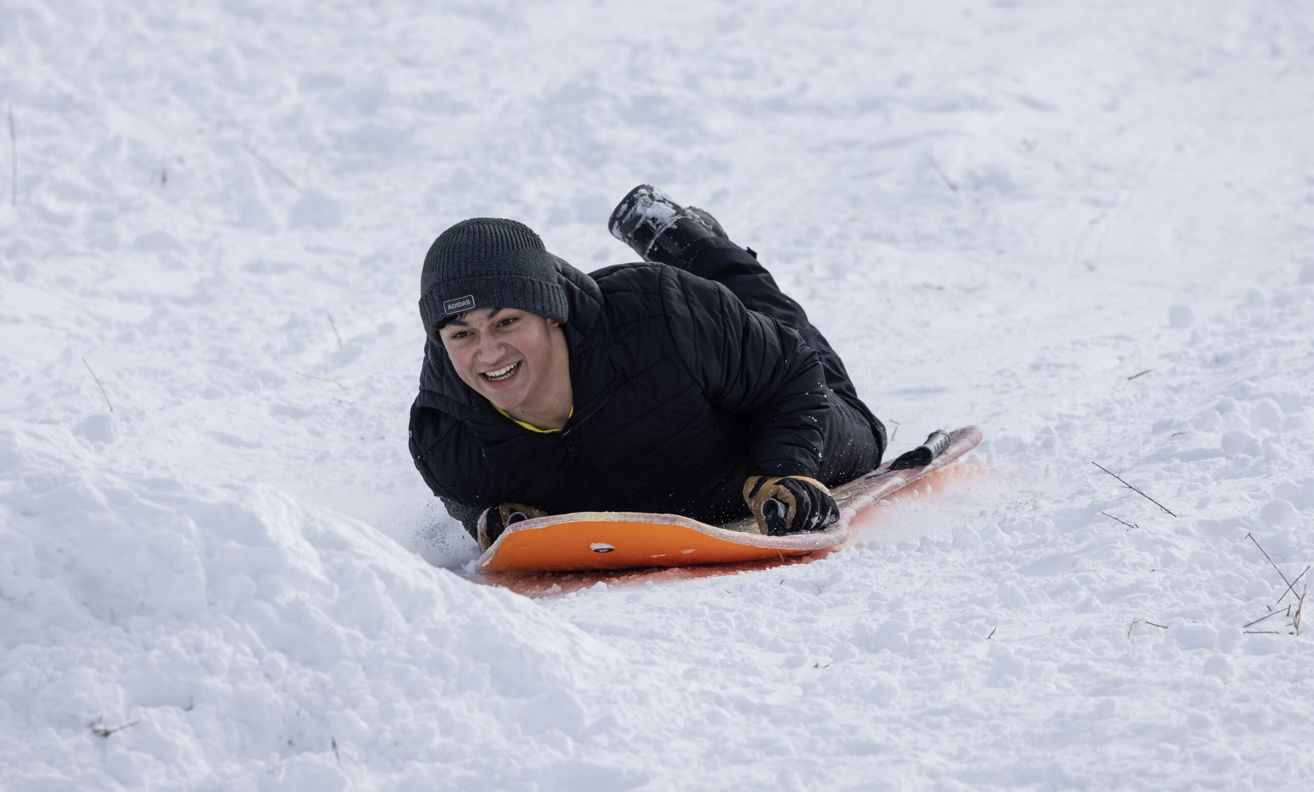 With Hopewell Valley Regional School District closed for a snow day, the long-favored sledding hill drew families, teens and adventurous adults for hours of sledding, tubing, snowboarding and even improvised downhill kayaking.