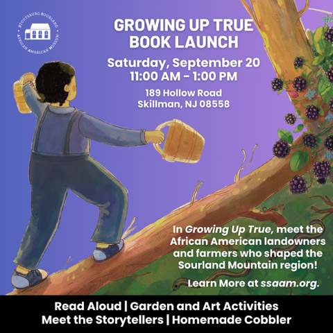 The Stoutsburg Sourland African American Museum (SSAAM) will hold a family-friendly celebration of the launch of its first children’s book, Growing Up True, on Saturday, September 20, from 11am to 1pm. Growing Up True is inspired by the legacy of the True family, African American landowners, and farmers in the Sourland Mountain region. SSAAM’s book launch party will bring the story to life with hands-on activities, creative exploration, and a chance to meet the team behind the book.
