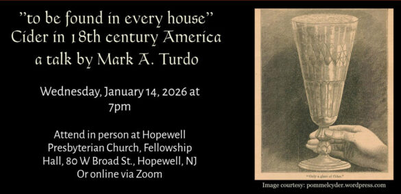 The Hopewell Museum, Hopewell Valley Historical Society, and Hopewell Public Library will host a talk on the history of cider in early America on Wednesday, January 14, 2026, at 7 p.m.