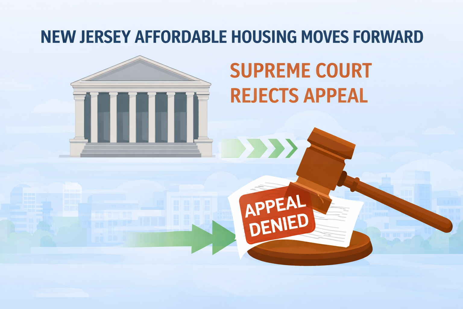 With the Supreme Court declining review, no further federal challenges remain pending, and New Jersey’s new affordable housing framework continues moving forward toward 2026 statutory deadlines for final municipal plan adoption.