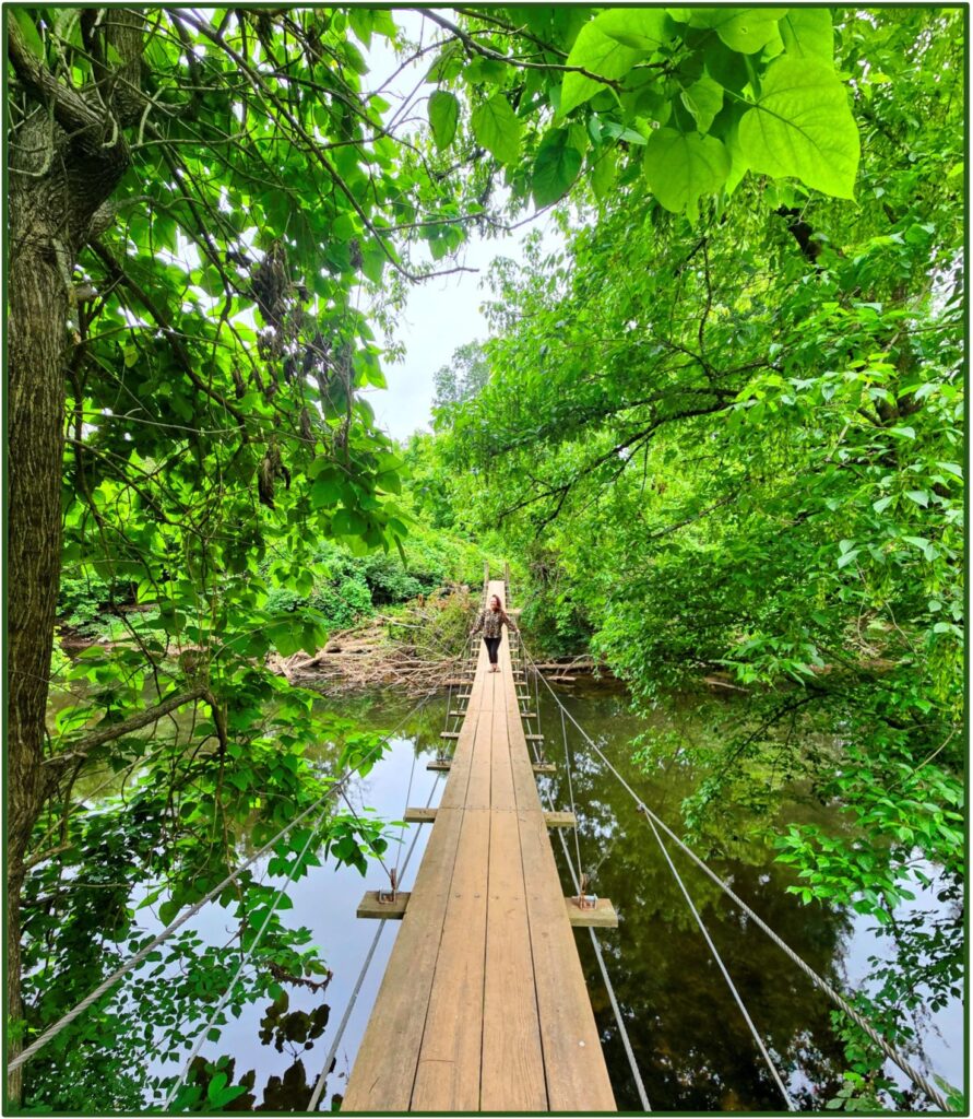 One of the main trails leads straight to the Woods’ most famous feature—the swinging bridge. It’s a hit with adults and kids alike. (I crossed it multiple times myself, even though I didn’t really need to!) There were plenty of people enjoying the park, snapping photos as they crossed. If you bring young children, just keep a close eye—there are gaps on the sides of the bridge.