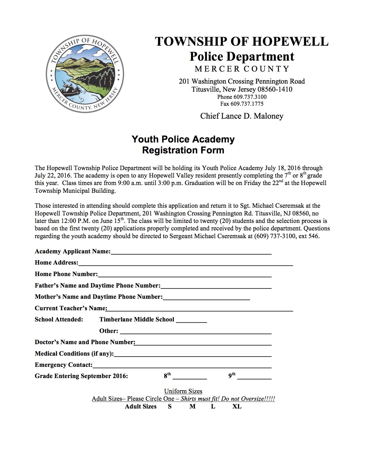 Youth Police Academy Applications for Hopewell Valley Residents Now Available